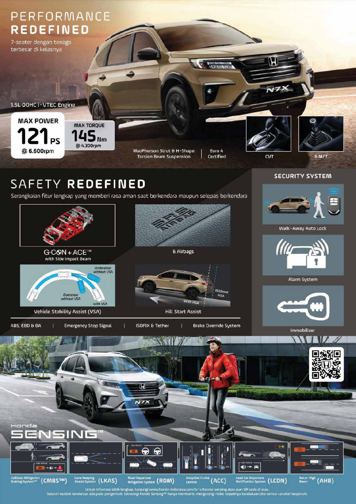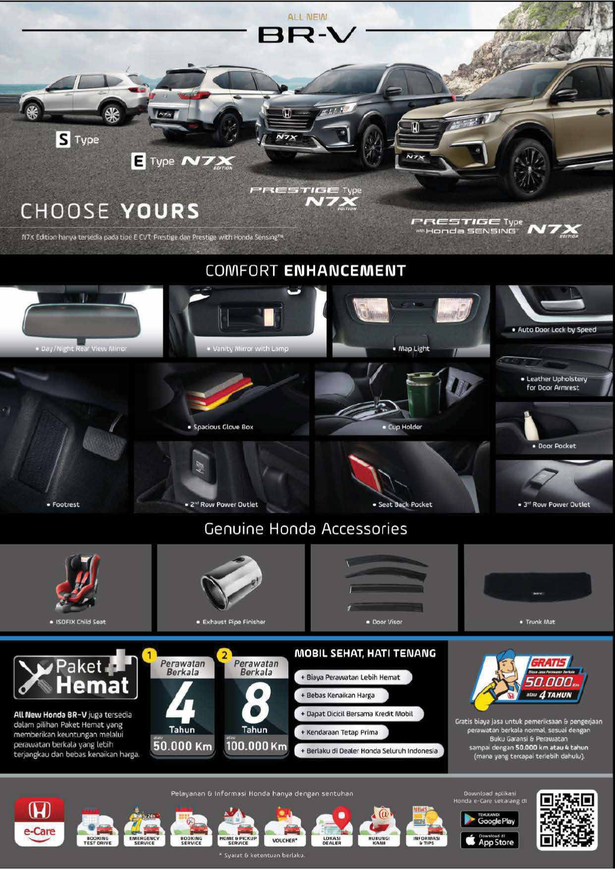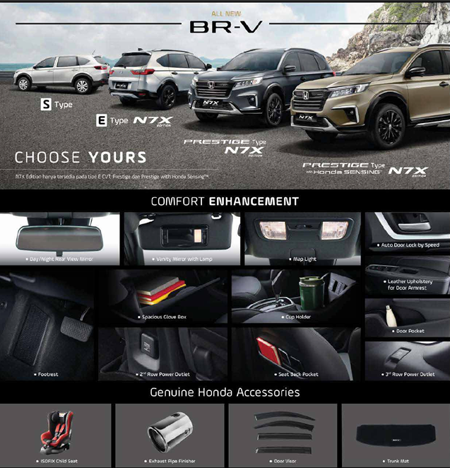 Sebuah crossover 7-seater canggih yang diciptakan khusus untuk melewati berbagai kondisi jalan dengan penuh ketangguhan . Tampilan luar pada spesifikasi Honda BR-V ini memiliki aura yang gagah, khas mobil-mobil jenis big SUV. Berbeda dengan Honda CR-V atau HR-V yang berkarakter agresif dan memiliki kesan macho, kali ini Honda BRV hadir dengan desain bodi perpaduan antara anggunnya Honda Mobilio dan sporty-nya Honda Jazz. Hasilnya? BR-V tampil kalem namun memiliki lekuk body stylish yang memancarkan aura elegan yang sempurna.